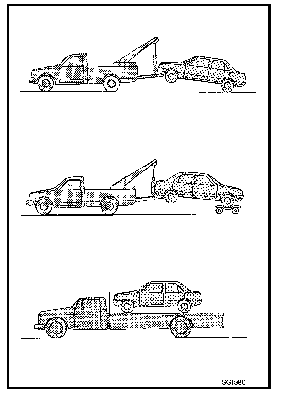 NISSAN recommends that the vehicle be towed with the driving (front) wheels off the ground.