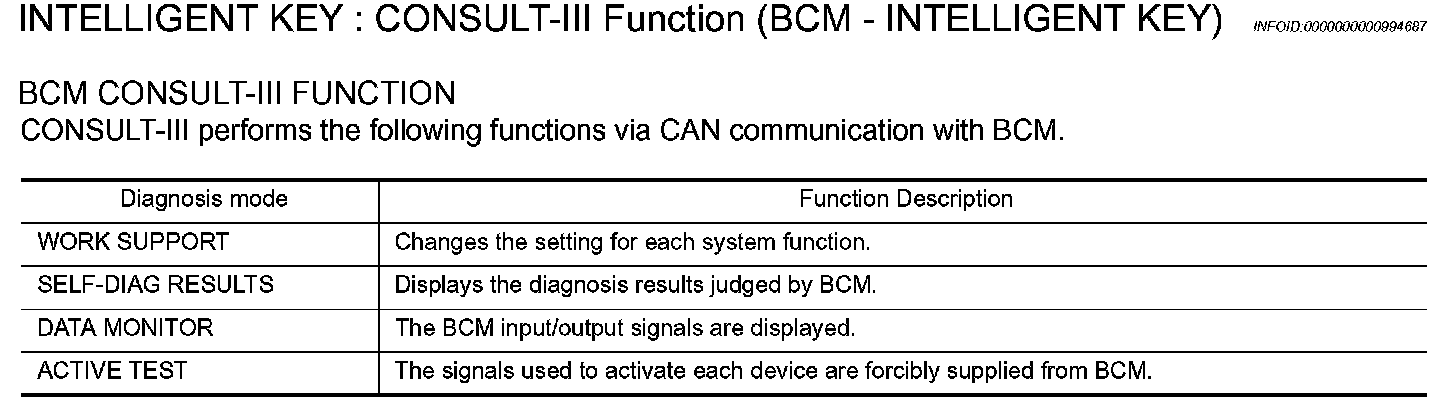 : CONSULT-III Function (BCM - INTELLIGENT KEY)