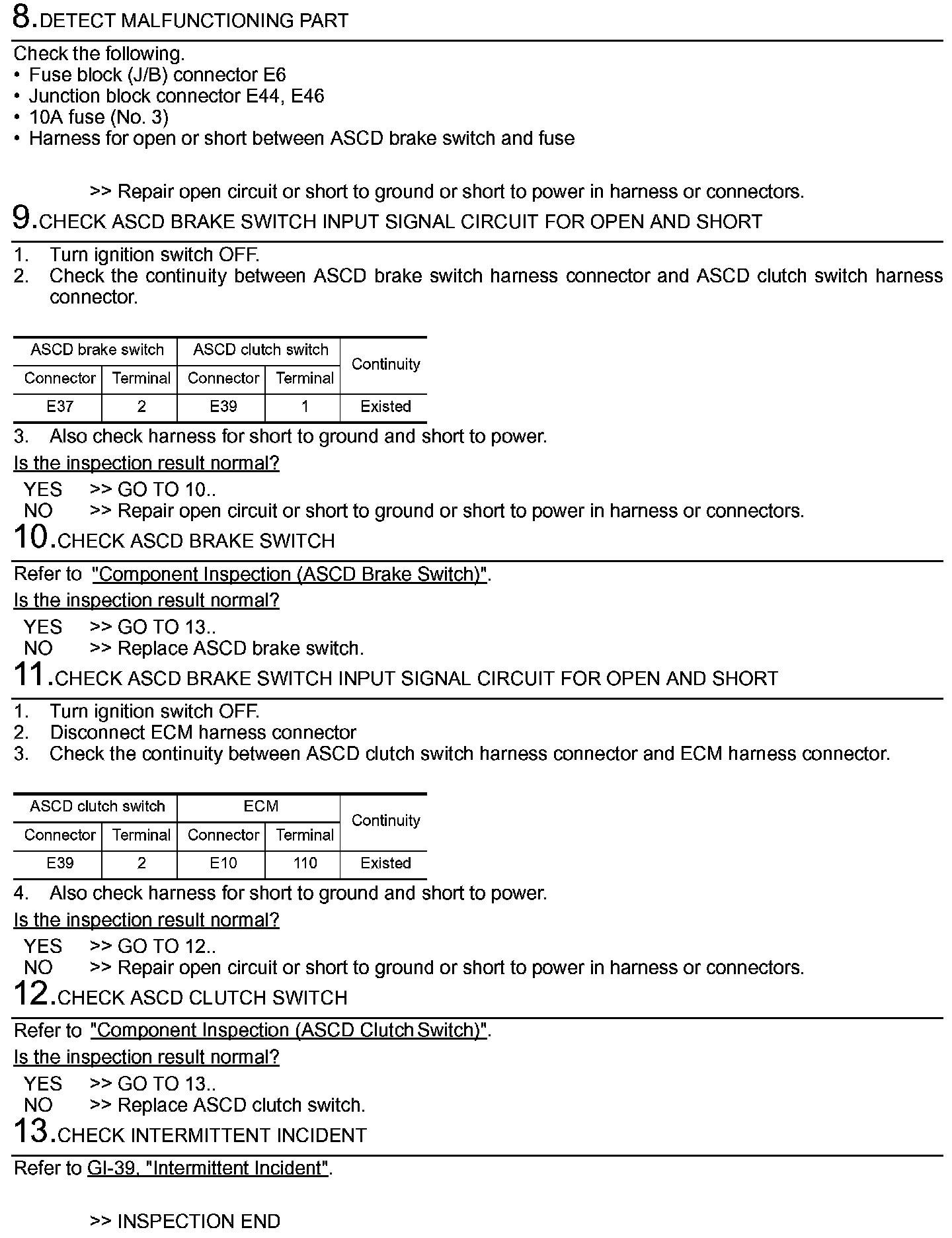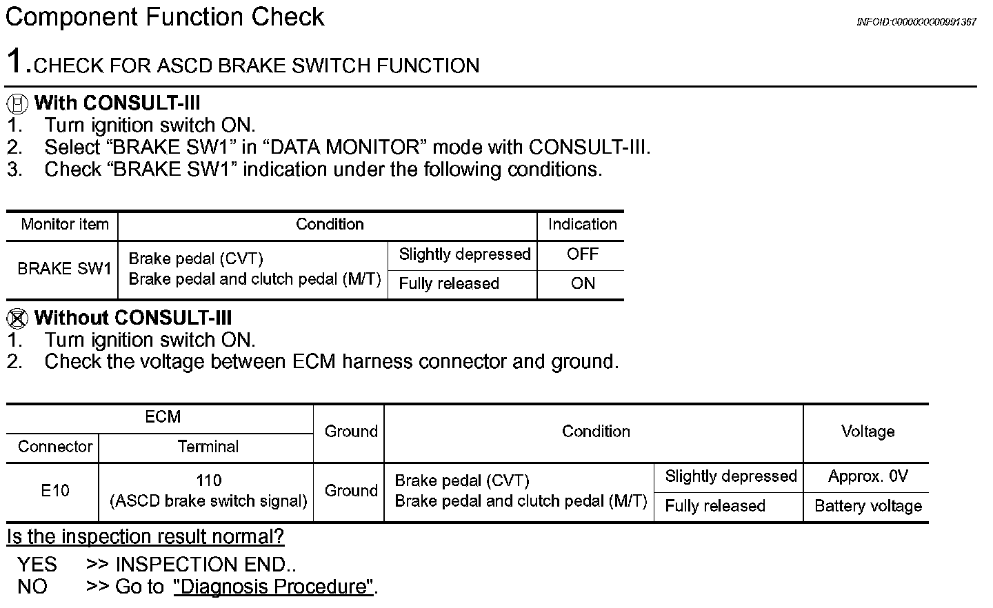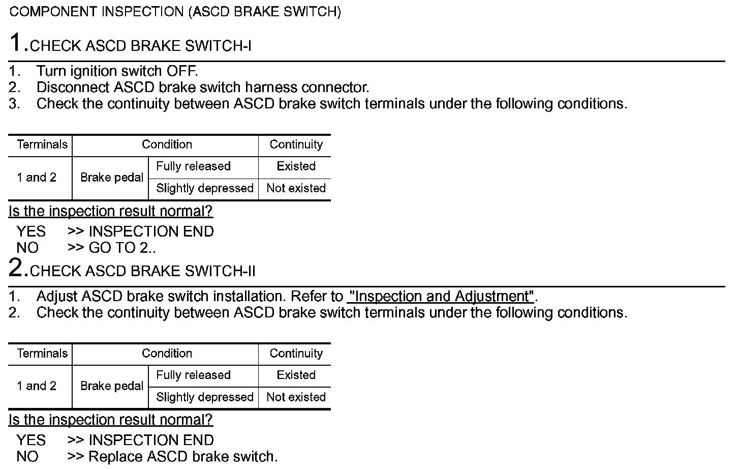 Component Inspection (ASCD Brake Switch)