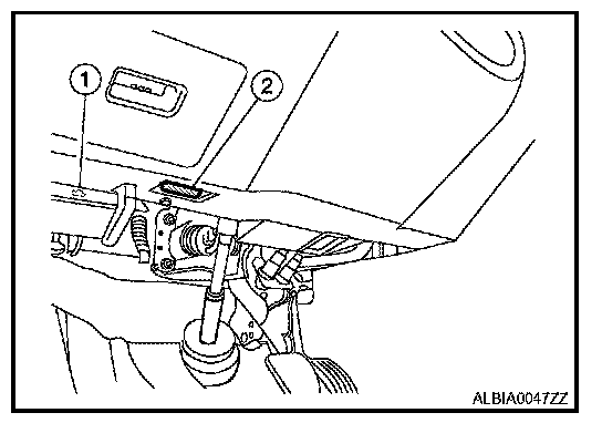 2. Connect "GST" to data link connector (2), which is located under LH dash panel near the hood opener handle (1).