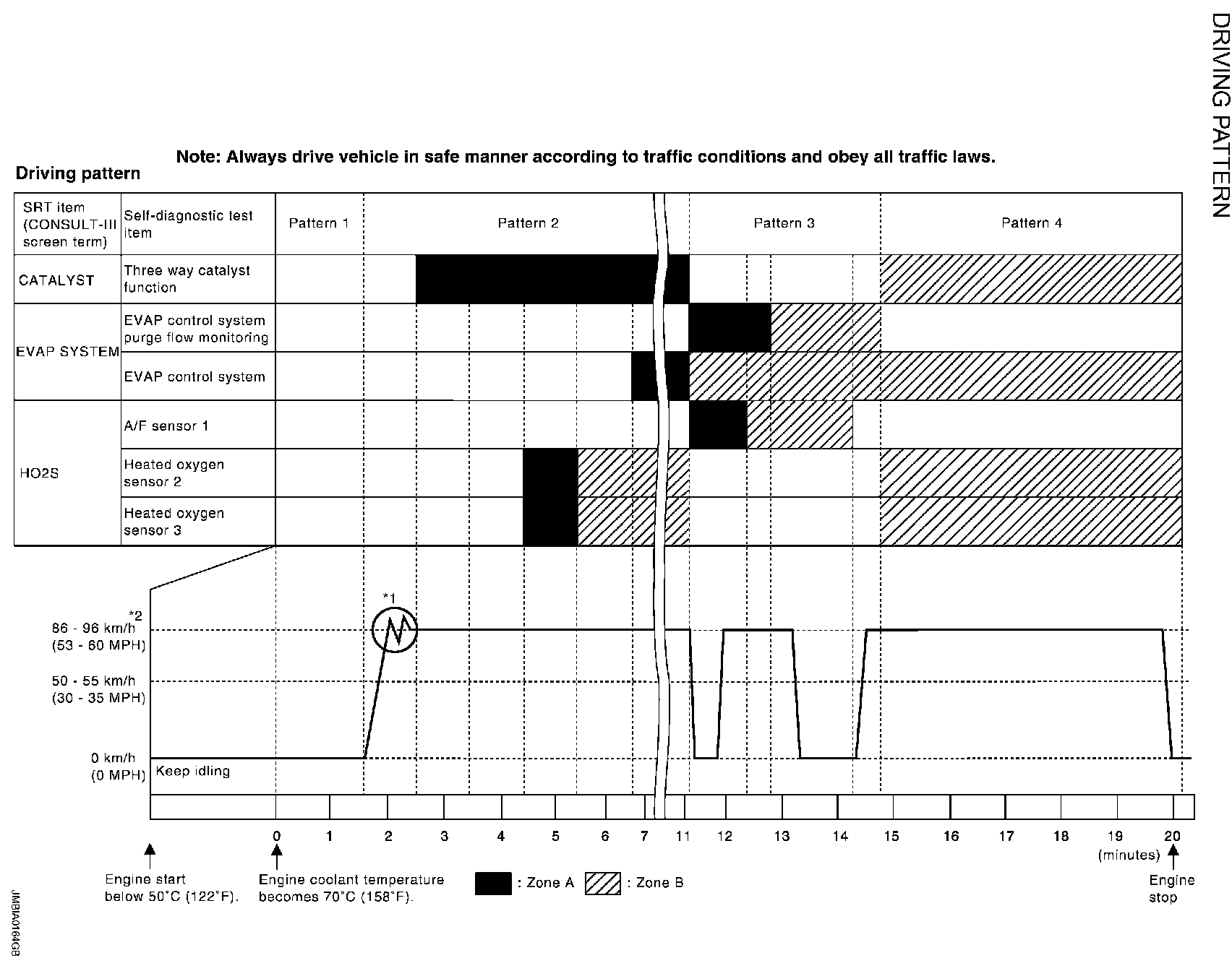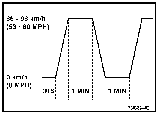 *1: Depress the accelerator pedal until vehicle speed is 90 km/h (56 MPH), then release the accelerator pedal and keep it released for more than 10 seconds. Depress the accelerator pedal until vehicle speed is 90 km/h (56 MPH) again.