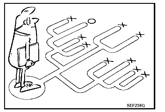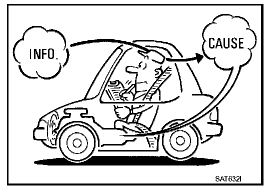Before undertaking actual checks, take a few minutes to talk with a customer who approaches with a driveability complaint. The customer can supply good information about such errors, especially intermittent ones. Find out what symptoms are present and under what conditions they occur. A "Diagnostic Work Sheet" as shown on the example (Refer to TM-238) should be used. Example of Diagnosis Sheet