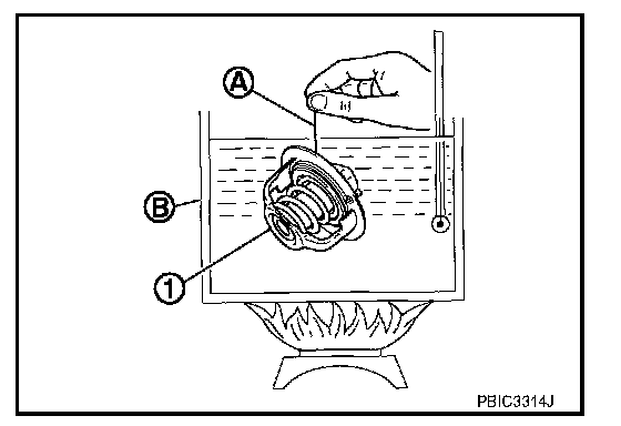 ^ Place a thread (A) so that it is caught in the valves of water control valve (1). Immerse fully in a container (B) filled with water. Heat while stirring.
