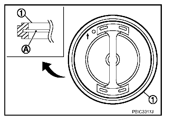 ^ Install water control valve while making rubber ring (1) groove fit to water control valve flange (A) around the whole circumference.