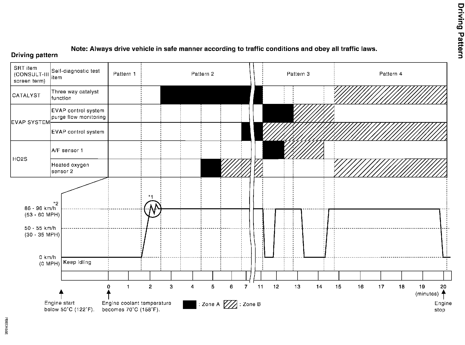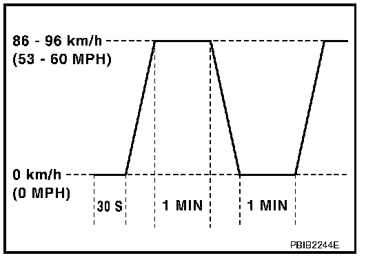 *1: Depress the accelerator pedal until vehicle speed is 90 km/h (56 MPH), then release the accelerator pedal and keep it released for more than 10 seconds. Depress the accelerator pedal until vehicle speed is 90 km/h (56 MPH) again.