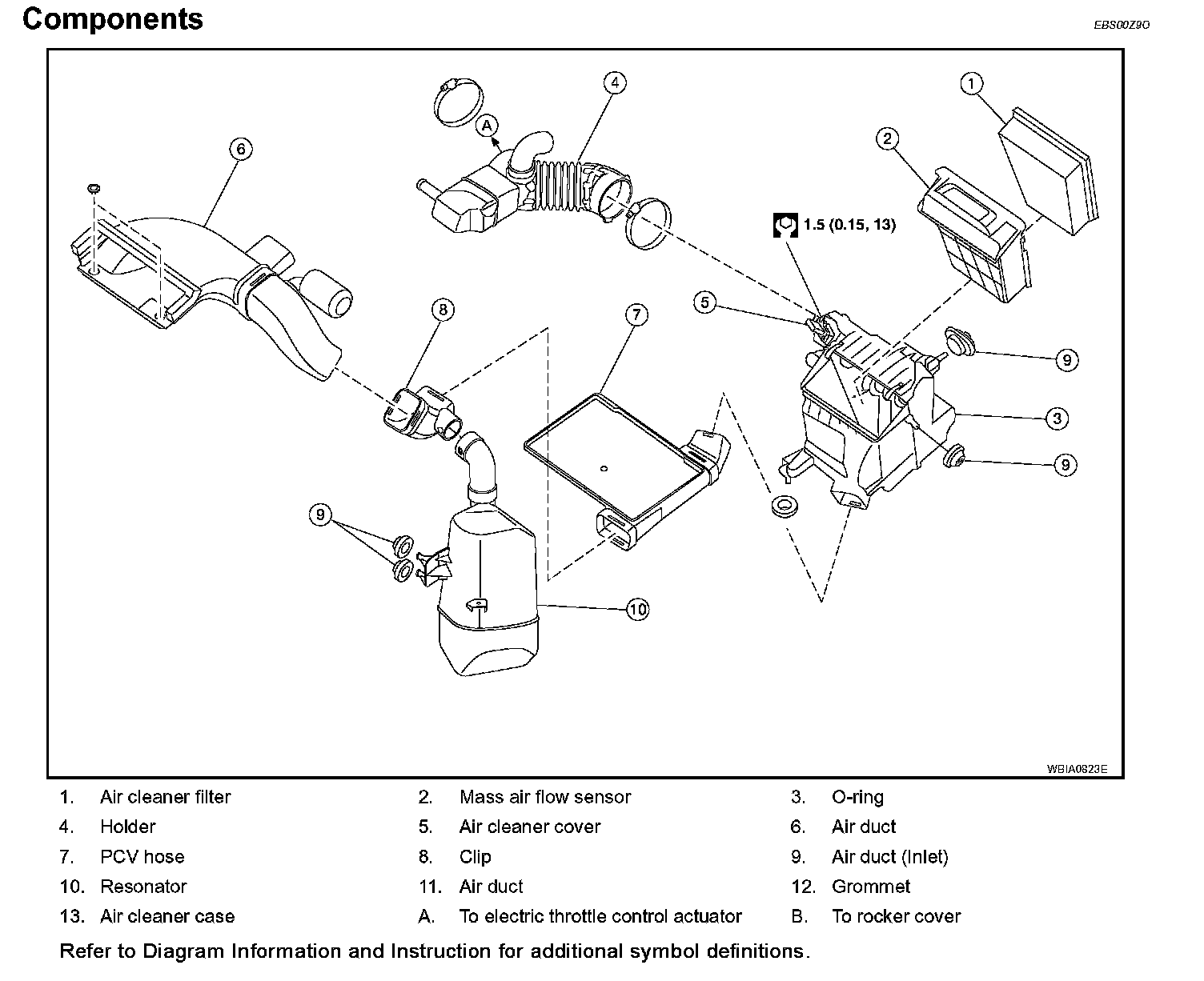 5. Remove the air duct (between air cleaner case and electric throttle control actuator).
