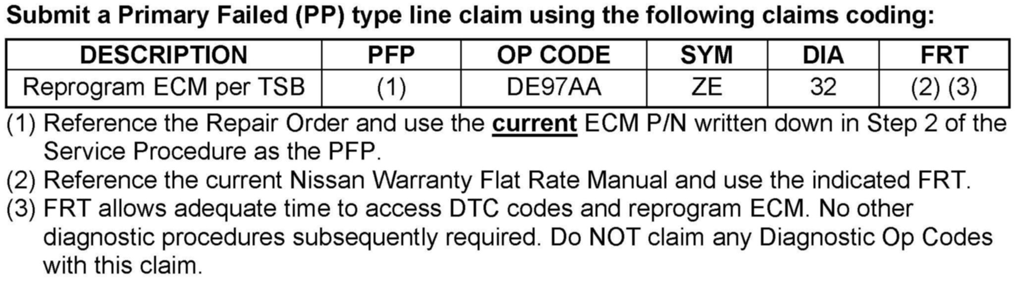 ^ Diagnosis and repairs beyond the ECM reprogramming are not covered by this bulletin.
