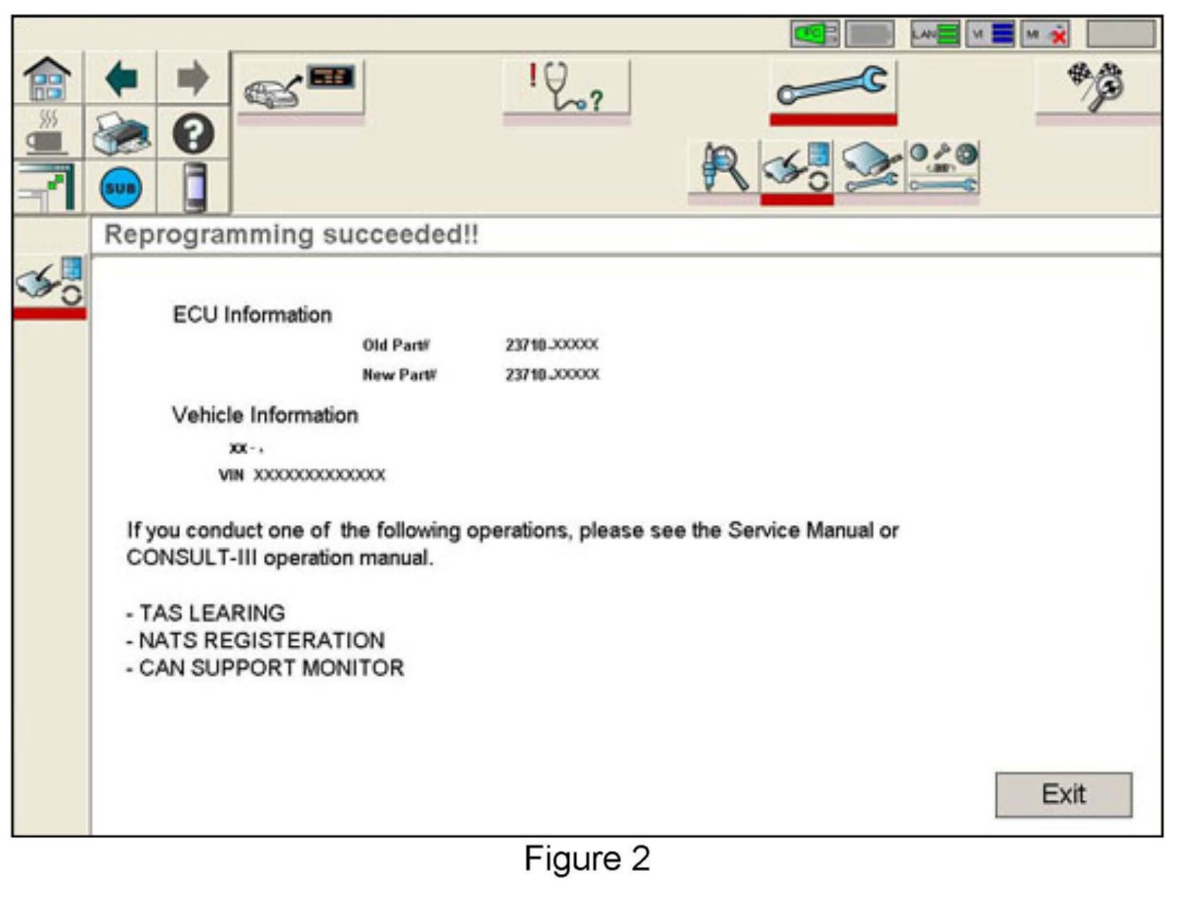 3. If this bulletin applies and you have performed ECM reprogramming, the screen in Figure 2 appears when reprogramming is complete. Print this screen and attach it to the Repair Order for Warranty documentation.