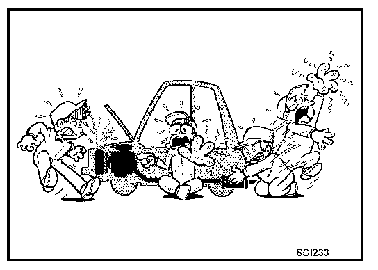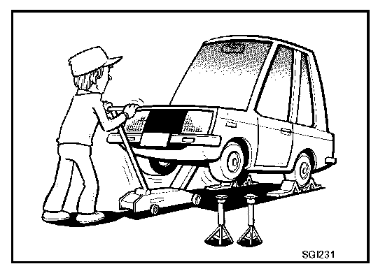 - Before jacking up the vehicle, apply wheel chocks or other tire blocks to the wheels to prevent the vehicle from moving. After jacking up the vehicle, support the vehicle weight with safety stands at the points designated for proper lifting before working on the vehicle.