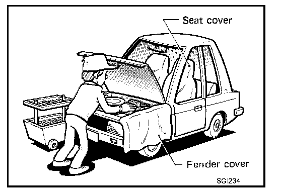 Protect fenders, upholstery and carpeting with appropriate covers.
