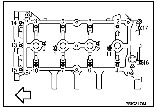 Camshaft Bearing CapInstall camshaft bracket bolts in three stage in numerical order as shown in numerical order as shown.