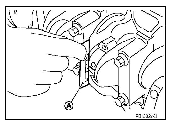 ^ Remove connecting rod cap and bearing, and using the scale (A) on the plastigage bag, measure the plastigage width.