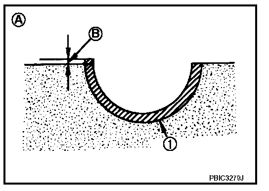 ^ Remove engine oil and dust on crankshaft pin and the surfaces of each bearing completely.
