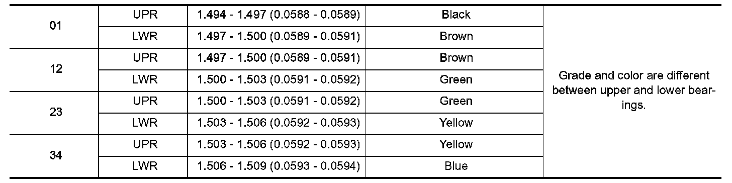 ^ If replacing connecting rod assembly, refer to "Connecting Rod Bushing Oil Clearance" to select connecting rod bearing.