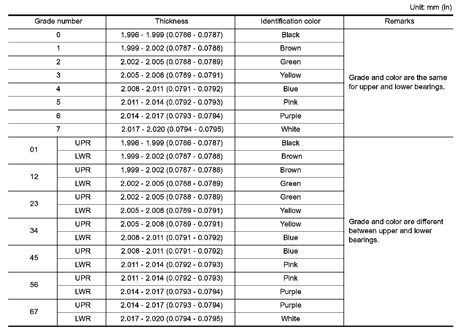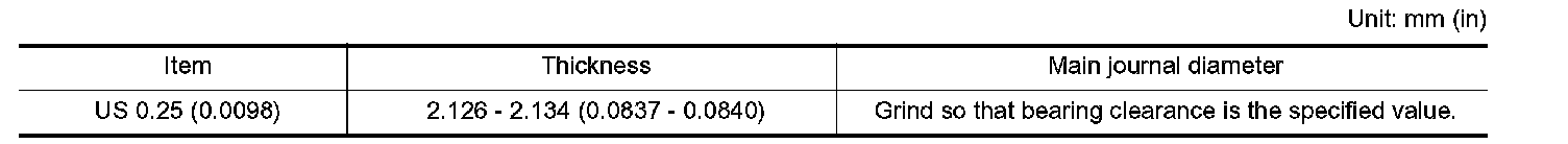 ^ If clearance exceeds the limit, select proper main bearing according to main bearing inner diameter and crankshaft main journal diameter to obtain specified bearing oil clearance.