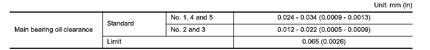No. 1, 4 and 5 journals: 0.024 - 0.034 mm (0.0009 - 0.0013 in)