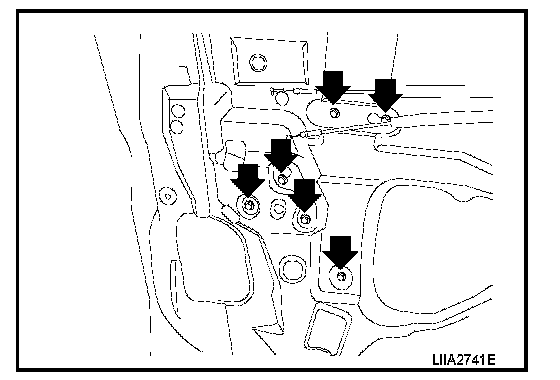 5. Remove the rear door glass bolts.