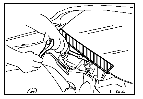 When performing the procedure after removing cowl top cover, cover the lower end of windshield with urethane, etc.