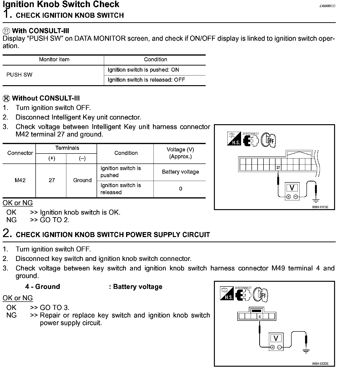 Ignition Knob Switch Check (Steps 1 - 2):