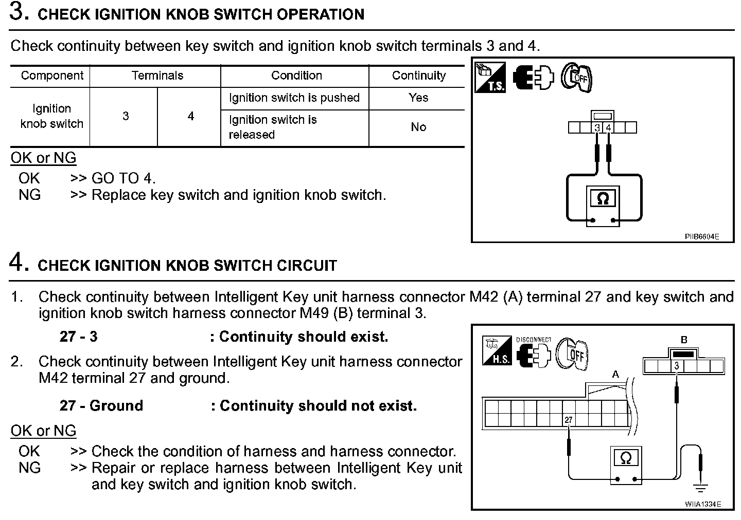 Ignition Knob Switch Check (Steps 3 - 4):