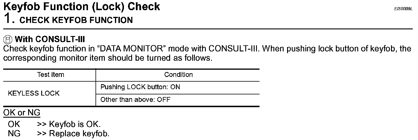 Keyfob Function (Lock) Check:
