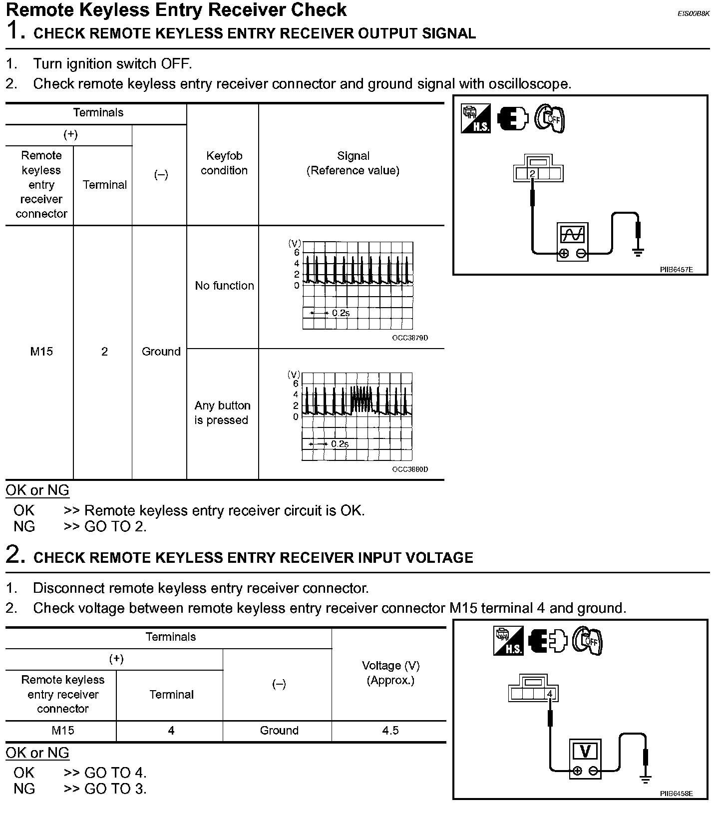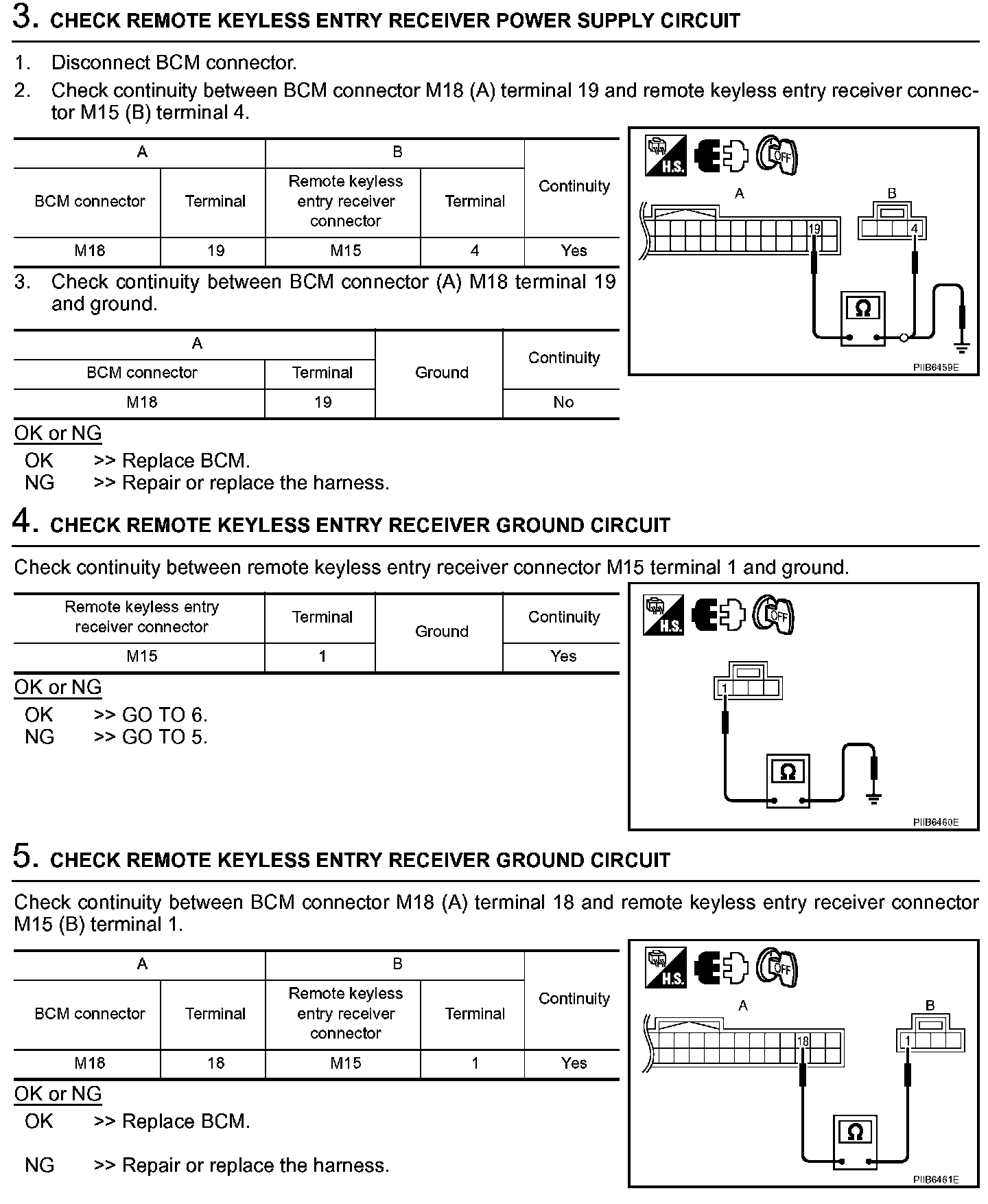 Remote Keyless Entry Receiver Check (Steps 3 - 5):