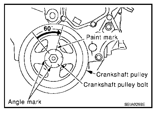 Turn crankshaft pulley bolt another 60° to 66° degrees [Target: 60° degrees].