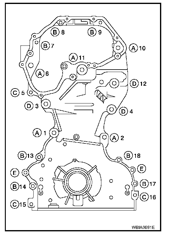 Tighten front cover bolts in the numerical order as shown.