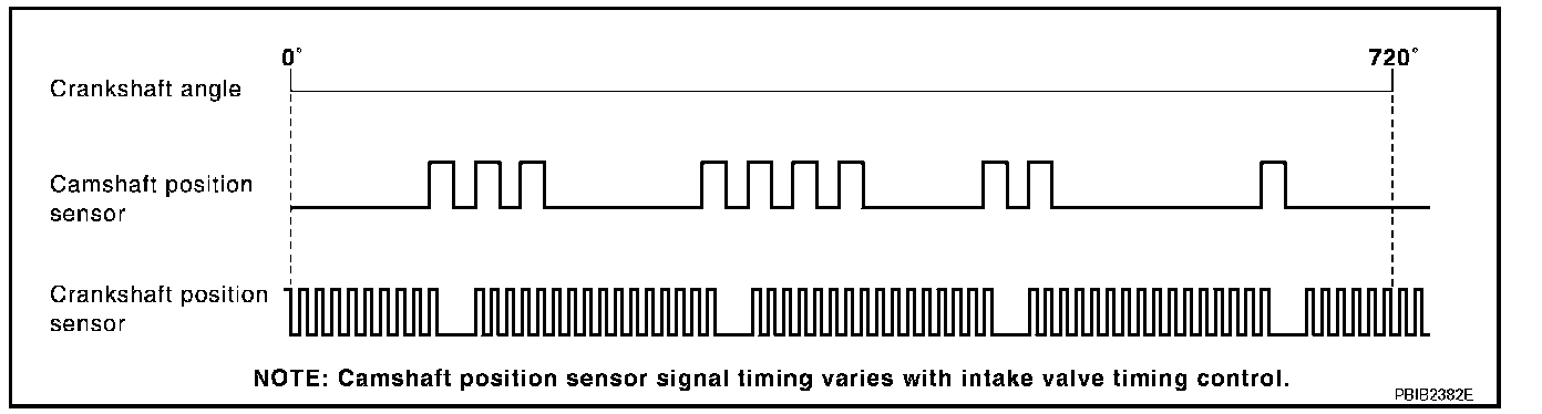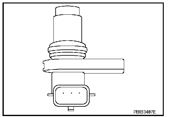 The camshaft position sensor (PHASE) senses the protrusion of camshaft (INT) to identify a particular cylinder. The camshaft position sensor (PHASE) senses the piston position. When the crankshaft position sensor (POS) system becomes inoperative, the camshaft position sensor (PHASE) provides various controls of engine parts instead, utilizing timing of cylinder identification signals. The sensor consists of a permanent magnet and Hall IC. When engine is running, the high and low parts of the teeth cause the gap with the sensor to change. The changing gap causes the magnetic field near the sensor to change. Due to the changing magnetic field, the voltage from the sensor changes.