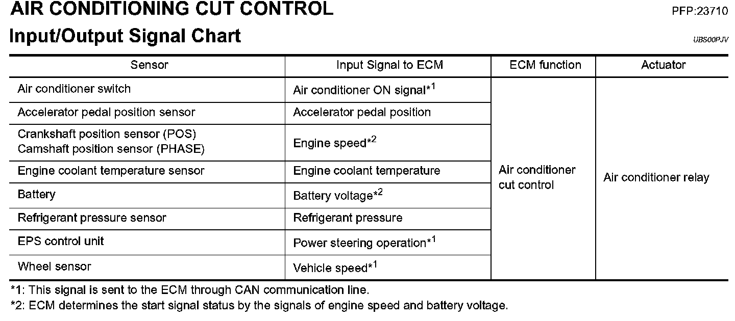 AIR CONDITIONING CUT CONTROLInput/Output Signal Chart