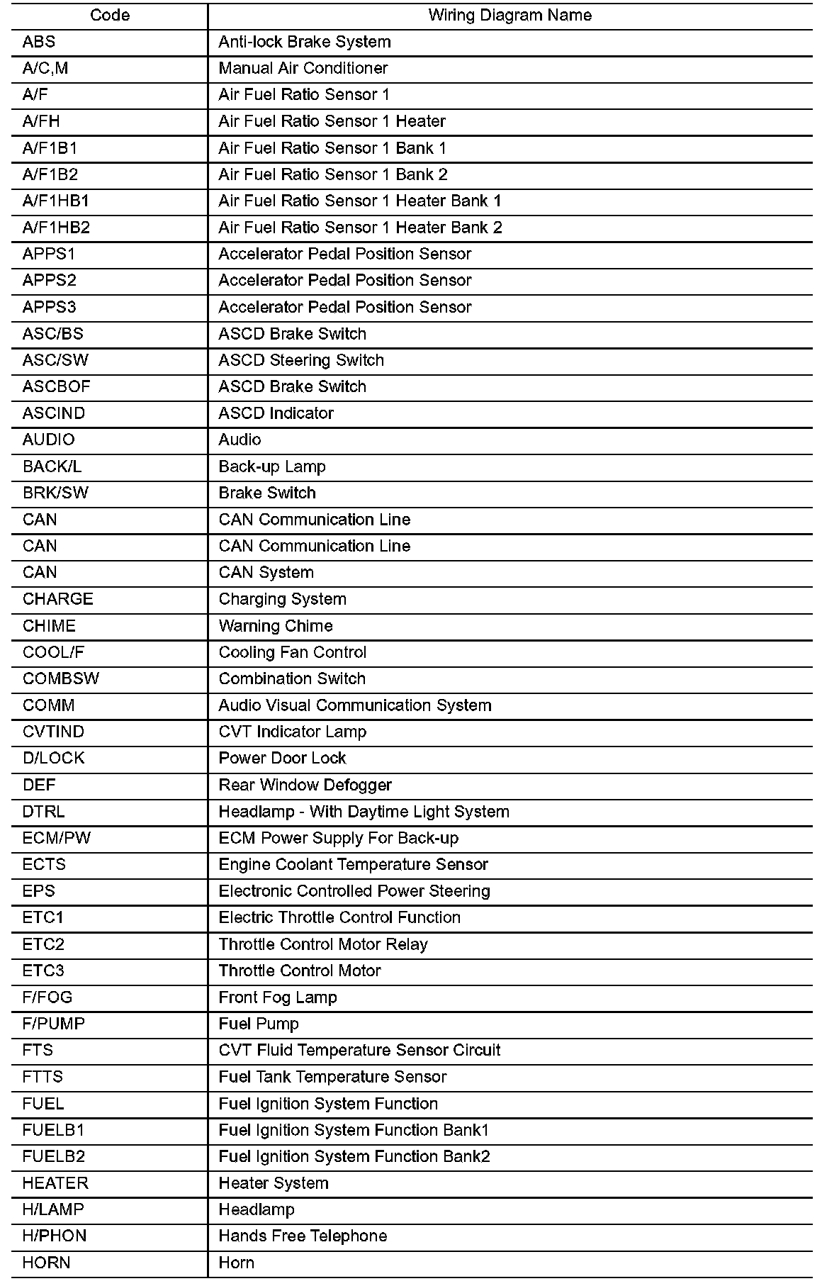 Wiring Diagram Codes/Abbreviations (Part 1):