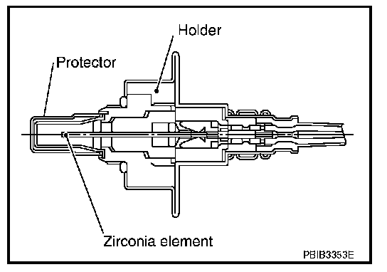 This sensor is made of ceramic zirconia. The zirconia generates voltage from approximately 1 V in richer conditions to 0 V in leaner conditions.