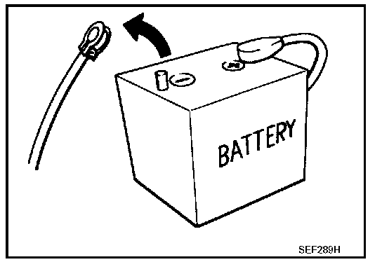 - Before removing parts, turn ignition switch OFF and then disconnect negative battery cable.