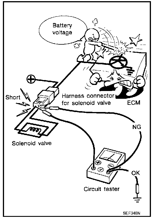- Do not use ECM ground terminals when measuring input/output voltage. Doing so may result in damage to the ECM's transistor. Use a ground other than ECM terminals, such as the ground.