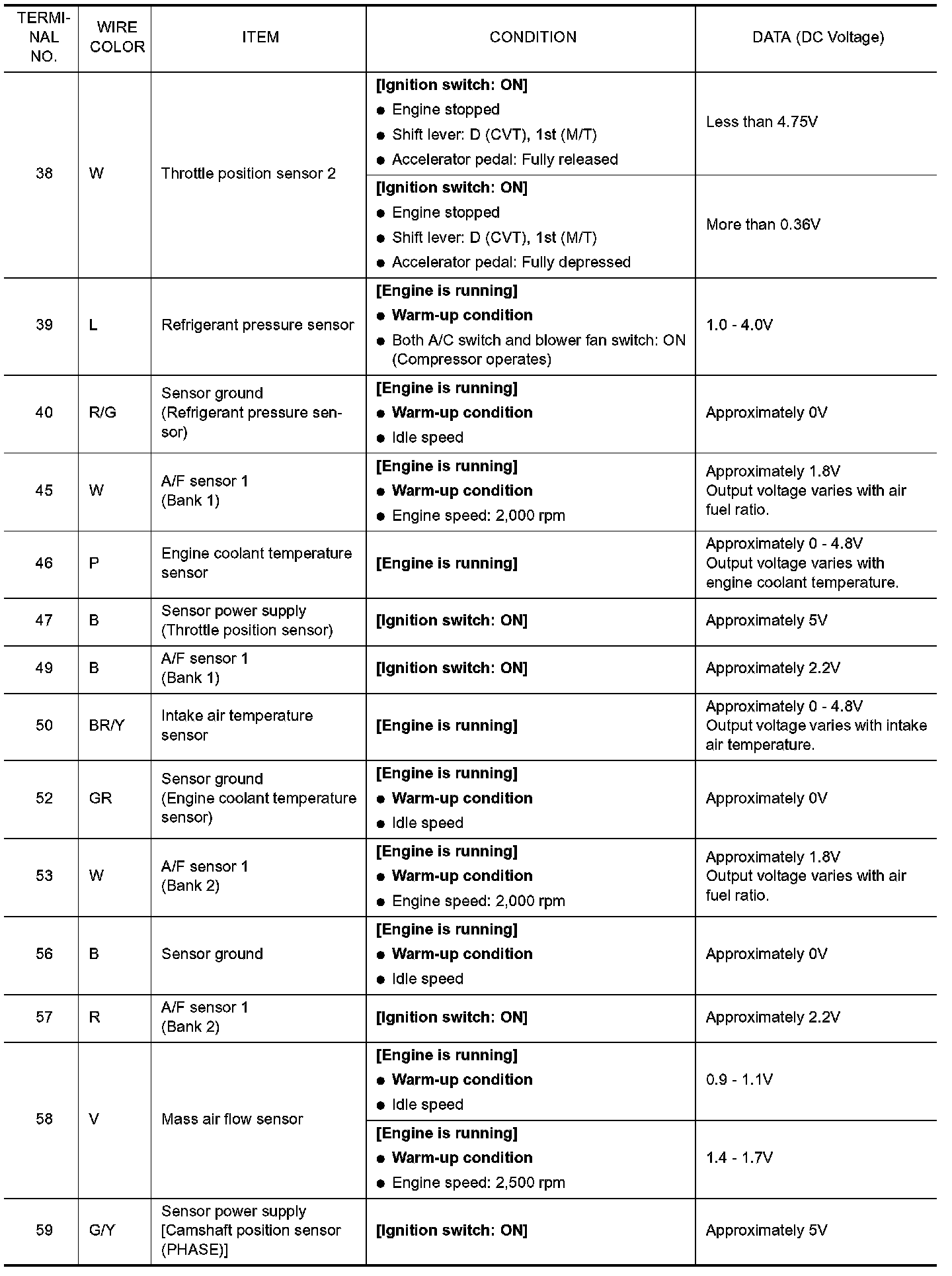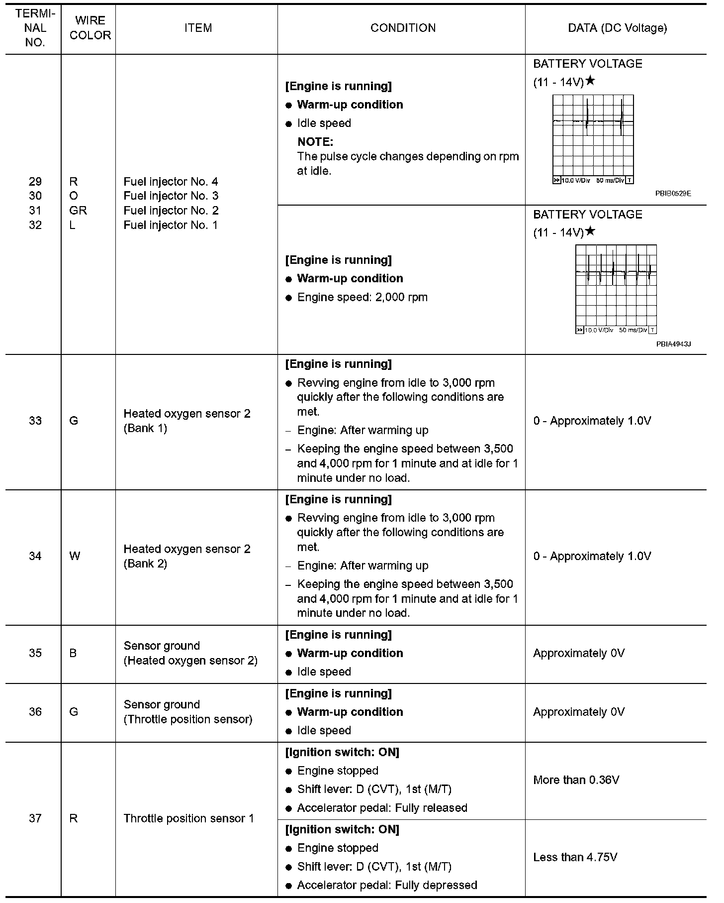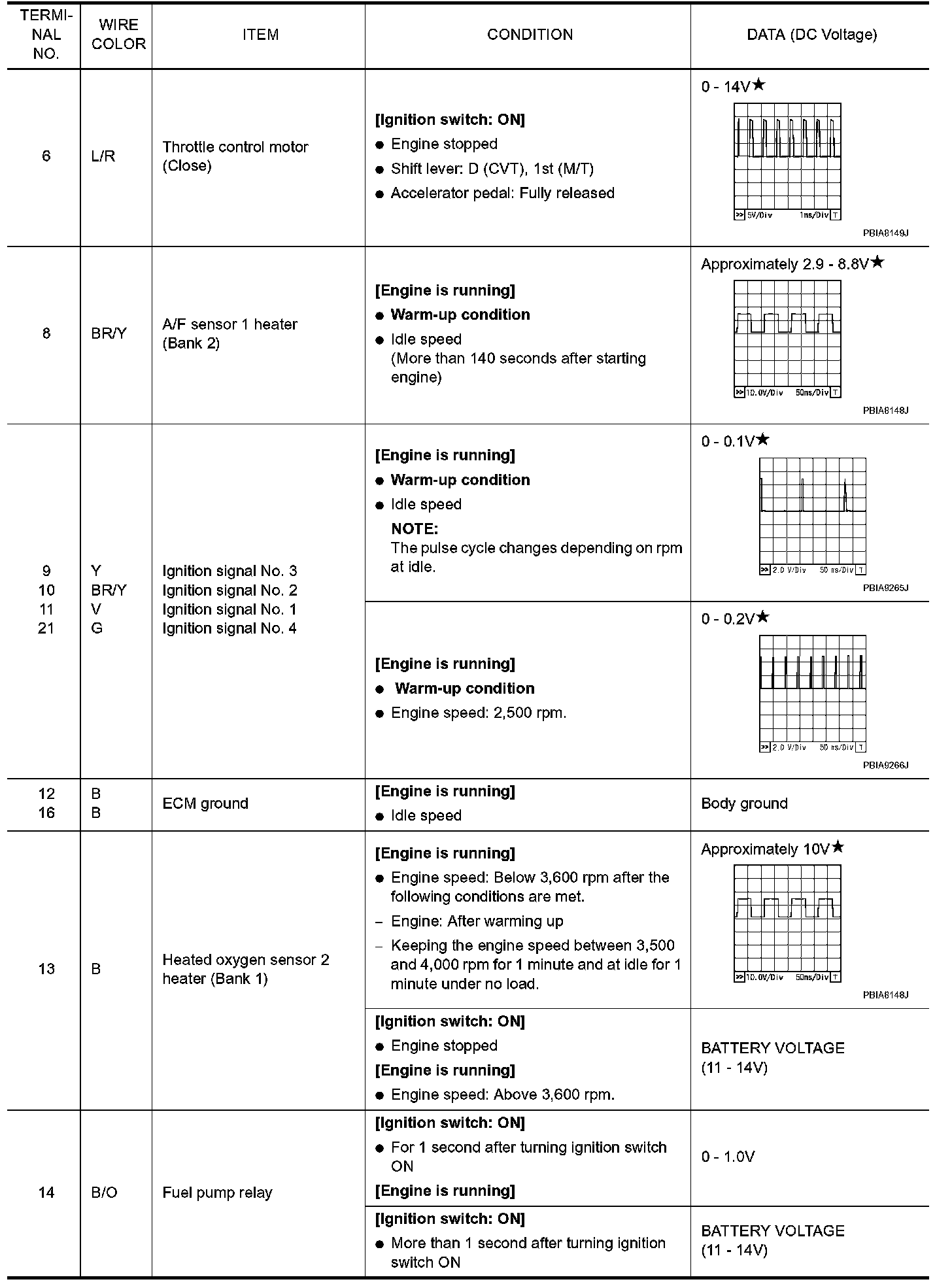 Specification data are reference values and are measured between each terminal and ground. Pulse signal is measured by CONSULT-III.