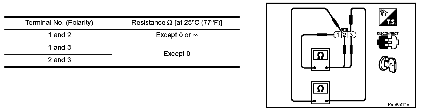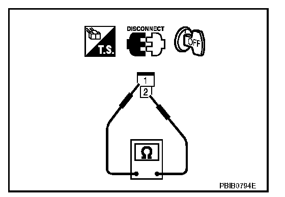 3. Check resistance between ignition coil terminals as shown.