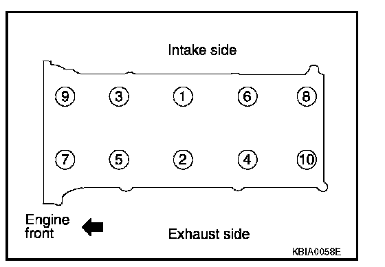 Cylinder HeadFollow the steps below to tighten the cylinder head bolts using Tool, in the numerical order as shown.