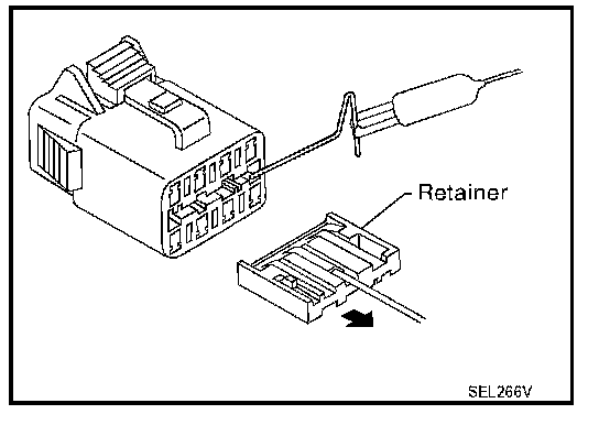 - Some connectors do not have a notch above each terminal. To probe each terminal, remove the connector retainer to make contact space for probing.