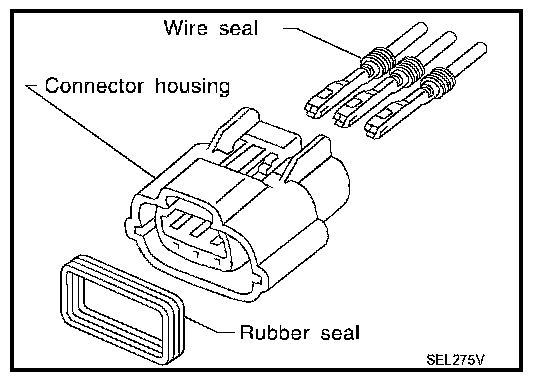 - The rubber seal may come off when connectors are disconnected. Whenever connectors are reconnected, make sure the rubber seal is properly installed on either side of male or female connector.
