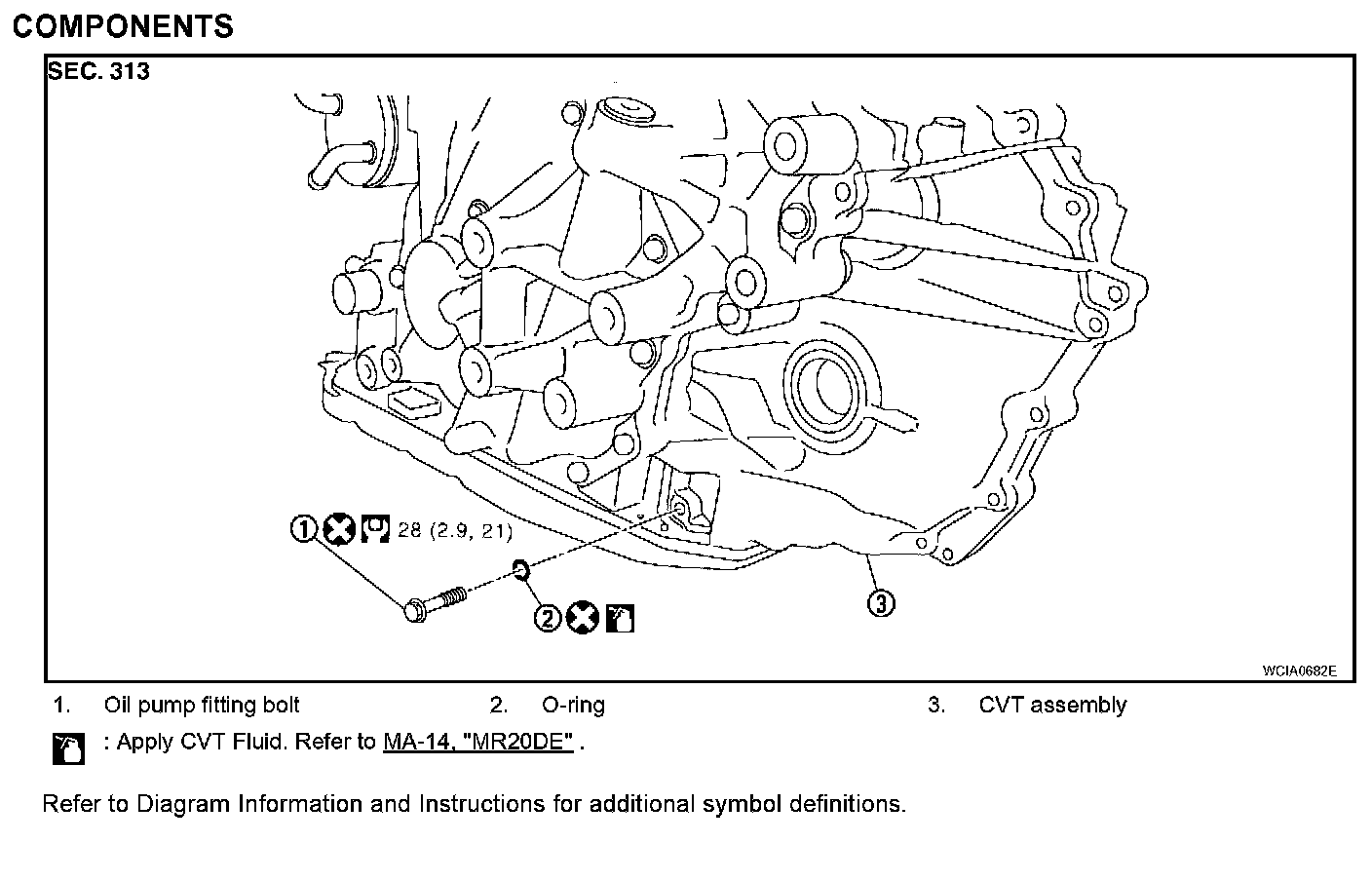 ^ After installation is complete, check for CVT fluid leakage and CVT fluid level.