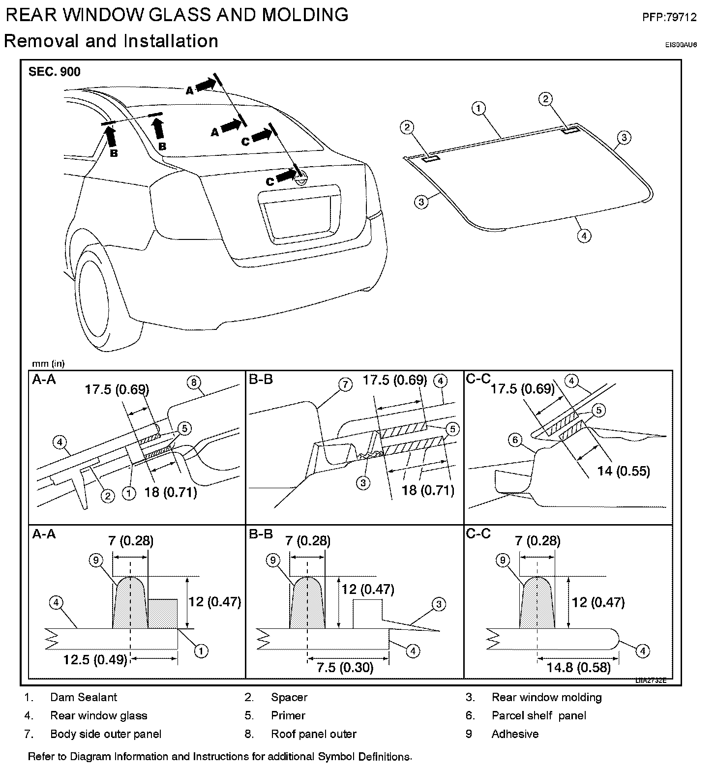 - Driving the vehicle before the urethane adhesive has completely cured may affect the performance of the rear window glass in case of an accident.