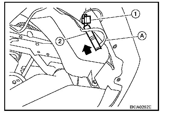 2. Disconnect washer motor connector (1) and detach the washer tube (A).