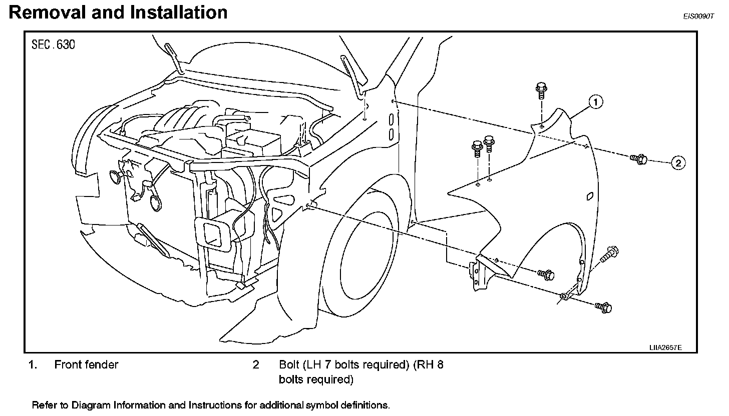 - After installing, apply touch-up paint onto the head of the front fender bolts.