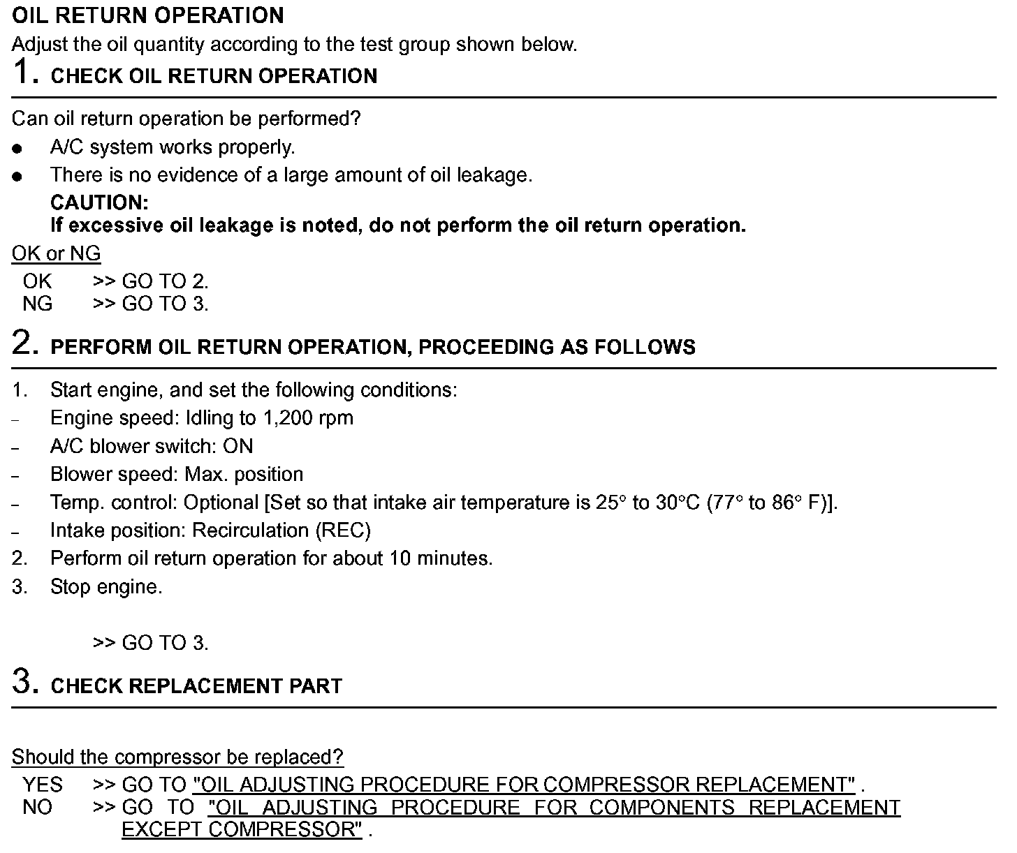 OIL ADJUSTING PROCEDURE FOR COMPONENTS REPLACEMENT EXCEPT COMPRESSOR