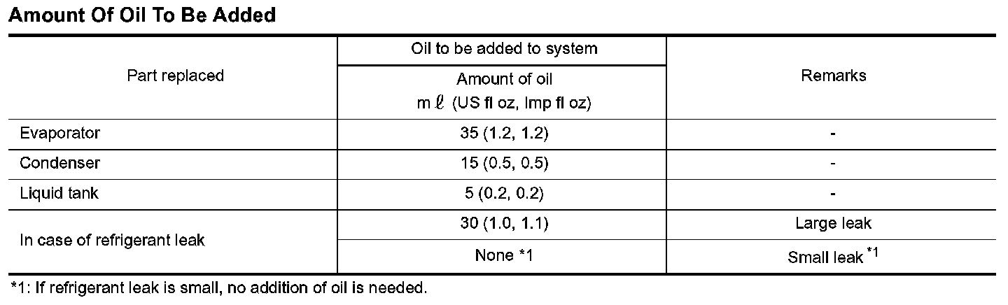 Add this 5 ml (0.2 US fl oz, 0.2 Imp fl oz.) of oil only when replacing the compressor.