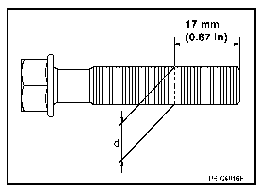 When "d" exceeds the limit (when it becomes thinner), replace connecting rod bolt with a new one.