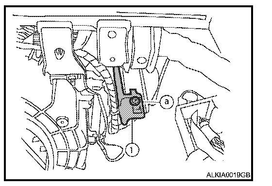 2. Remove the screw (a), lower the bracket and remote keyless entry receiver (1) disconnect the harness and remove.