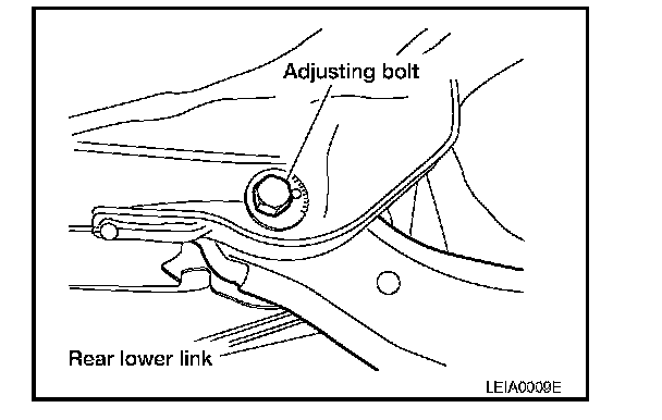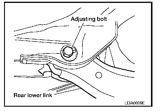 Adjusting bolt nuts: Refer to RSU-9, "Exploded View". Rear Suspension Assembly