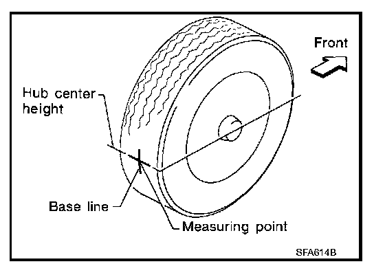 ^ Check the wheelarch height in the unladen condition. Refer to RSU-17, "Wheelarch Height (Unladen*)". [1][2]Ride Height (Unladen)