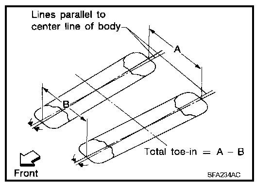 Measure the toe-in using the following procedure. If out of specification, inspect and replace any damaged or worn rear suspension parts before adjusting.